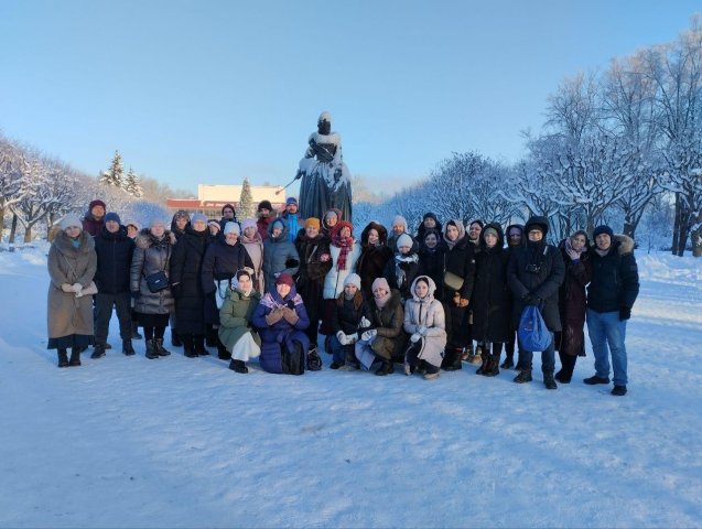В этот же день паломники побывали на Смоленское кладбище, куда неизменно они возвращаются каждый год. Ведь здесь, в часовне, находятся мощи святой блаженной Ксении Петербургской, одной из любимых святых наших покровчан! Впервые молодые люди побывали на экскурсии в музее, посвящённом этой святой.