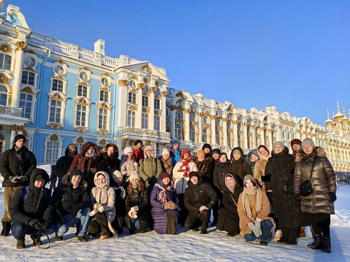 На следующий день молодежь поехала в Царское село. Царское Село - блистательная резиденция российских монархов и последний дом последнего императора". Паломники посетили Фёдоровский Государев собор, построенный по личному желанию Николая II, Фёдоровский городок - уникальный комплекс зданий, где сложилось " Общество возрождения художественной Руси", а во время 1 Мировой войны были госпитали.