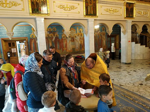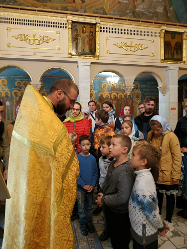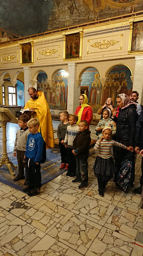 Во время посещения обители о. Димитрий Барицкий отслужил молебен, после которого ознакомил детей с монастырем, дал наставления на будущий учебный год и ответил на вопросы первоклашек.