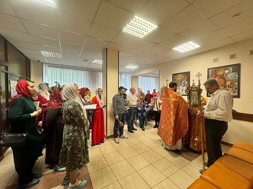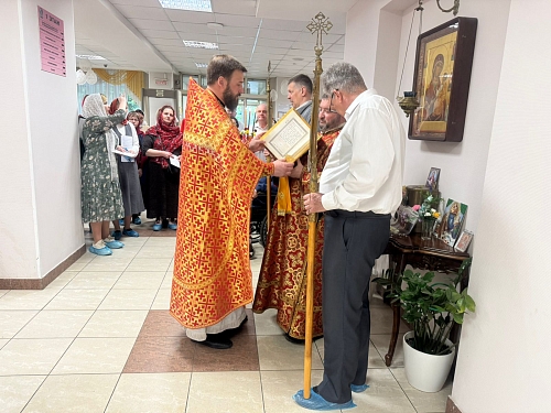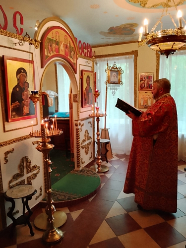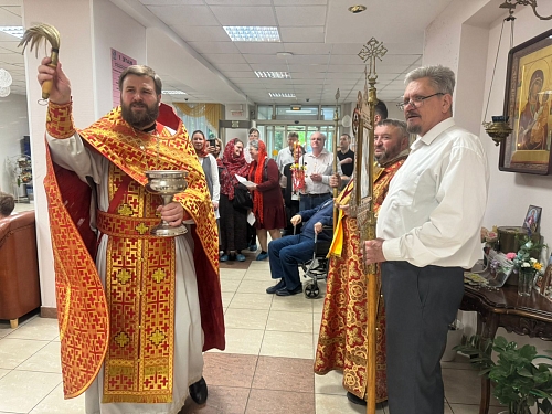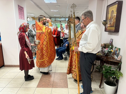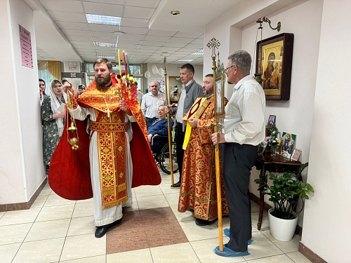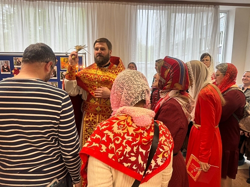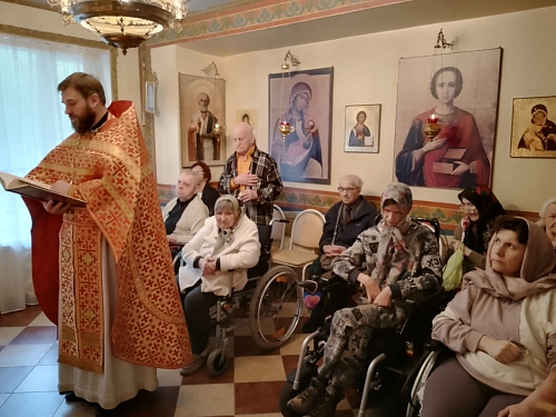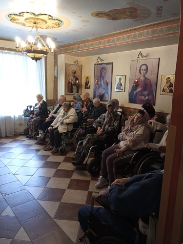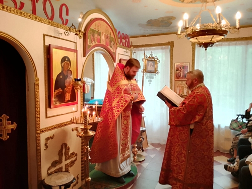 На Богослужении присутствовали жители Пансионата, сестры сестричества в честь Жен Мироносиц. По окончании Литургии был совершен Крестный ход, который завершился окроплением присутствующих святой водой